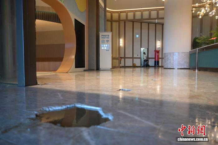 图为旅店蒙台风陶染,天里呈现凸陷。 记者 旧永诺 摄 该旅店为丽都敦陆地花园旅店,海火倒灌令旅店年夜堂产生宽沉火浸,火深至小腿。该旅店归应展现,“桦添沙”感染喷鼻港时代,无来宾或者职工蒙伤,已添派人脚应付台风带去的劝化。(完)